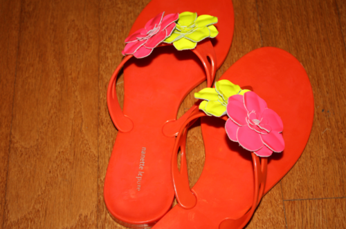 Bright, fun flip-flops. These Nanette Lepore pair have been carrying me faithfully this entire summer. It doesn't get any easier than flip-flops, and trust me, when the temperature lounges at 100°F all week, you just want to slip into something easy.
